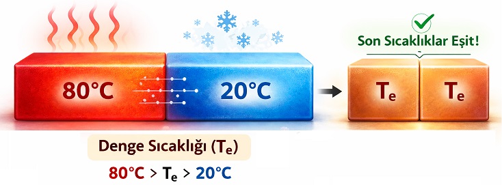 Denge sıcaklığı = (60 + 20) ÷ 2 = 40°C olur.