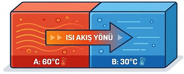 Örnek: A maddesi: 60°C, B maddesi: 30°C birbirine temas ettirildikten sonra son sıcaklıkları kaç olur?