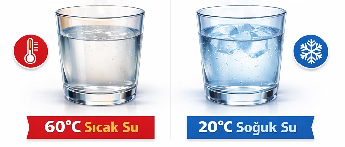 Örnek: Bir bardakta 60°C sıcaklığında su, başka bir bardakta ise 20°C sıcaklığında sular eşit miktarda karıştırılınca denge sıcaklığı ne olur?
