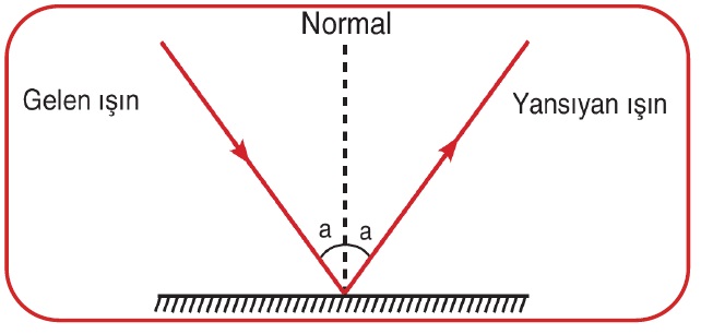 Yüzeyin normali: Gelen ışının yansıtıcı yüzeye çarptığı noktadan yüzeye dik olarak çizilen hayali çizgidir.