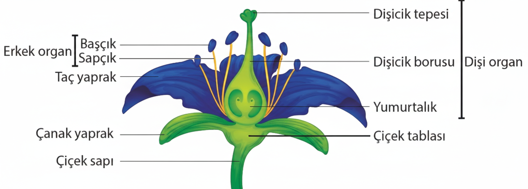 Çiçek Tablası: Çiçeğin diğer kısımlarını üzerinde taşıyan yapıdır.