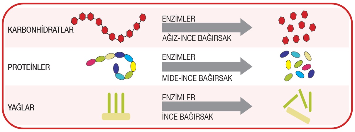 Kimyasal sindirim: Besinlerin enzimler yardımıyla hücrelere geçebilecek kadar küçük parçalara ayrılması işlemine denir.